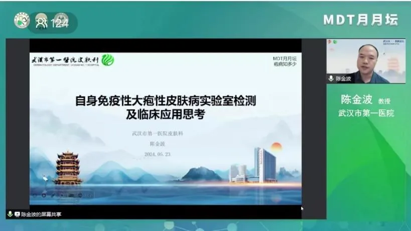 2024年5月23日,由北京健康促進會聯(lián)合一味書院及多家醫(yī)療機構(gòu)主辦的《MDT月月壇(第4期)—皰病知多少》于線上成功舉行。本次論壇由武漢市第一醫(yī)院陳柳青教授擔(dān)任大會主席,武漢市第一醫(yī)院陳金波教授擔(dān)任主持及講課嘉賓,四川大學(xué)華西醫(yī)院周興麗博士作為講課嘉賓,山東第一醫(yī)科大學(xué)附屬皮膚病醫(yī)院楊寶琦擔(dān)任討論嘉賓。