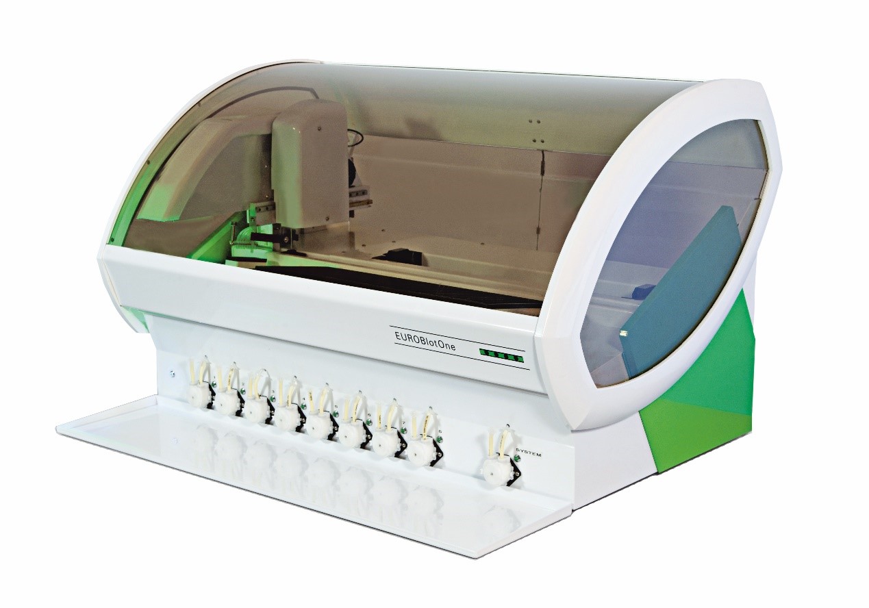 EUROBlotOne是一款緊湊型桌面設備,提供免疫印跡檢測所有流程的全自動操作,實現(xiàn)從樣本識別、樣本稀釋、全自動加樣、所有孵育及清洗過程,到自動成像、圖像分析與處理的全自動操作,最終的檢測結果分析由EUROLineScan印跡法判讀軟件完成,檢測結果可由EUROLineScan直接定制圖文報告,也可直接連接LIS或EUROLabOffice進行信息化管理。設備大幅度提高免疫印跡檢測的工作效率,實現(xiàn)全部操作的標準化。